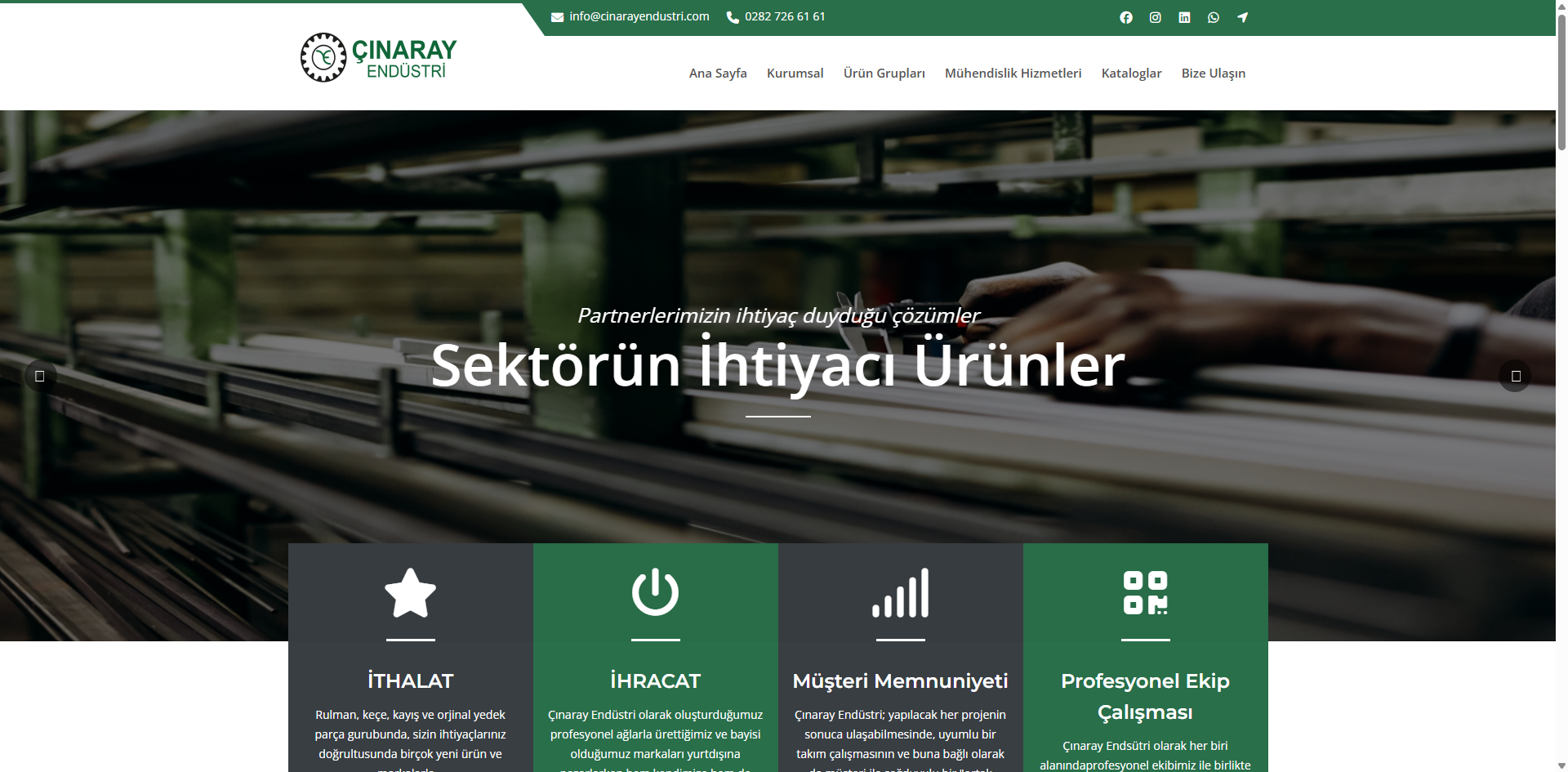 Çınaray Endüstri için kurumsal kimliğine uygun, mobil uyumlu, hızlı ve kullanıcı dostu bir web sitesi tasarlandı. Firmanın ürün ve hizmetlerini yalın, anlaşılır ve estetik bir yapıyla sunan